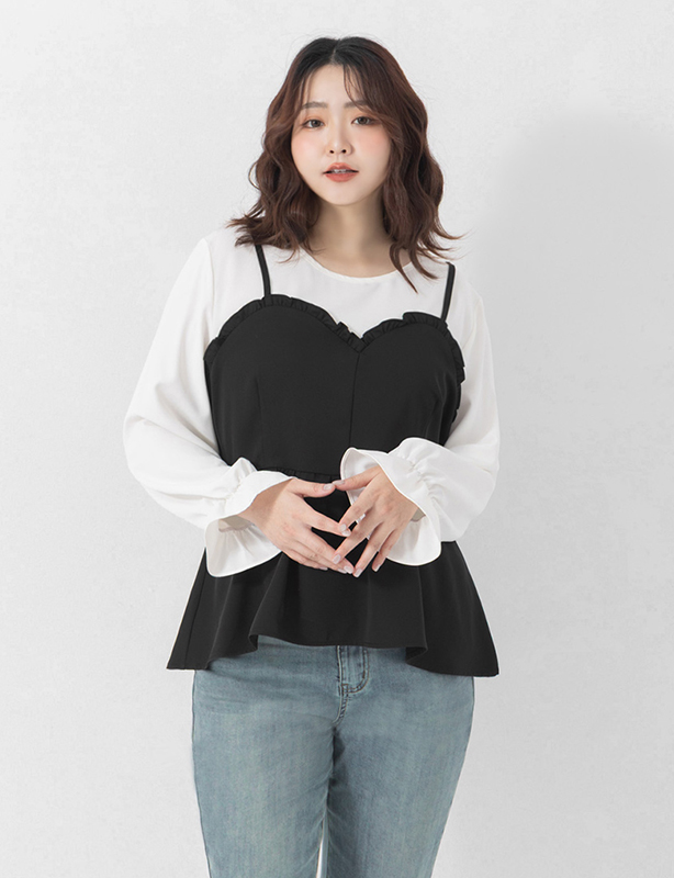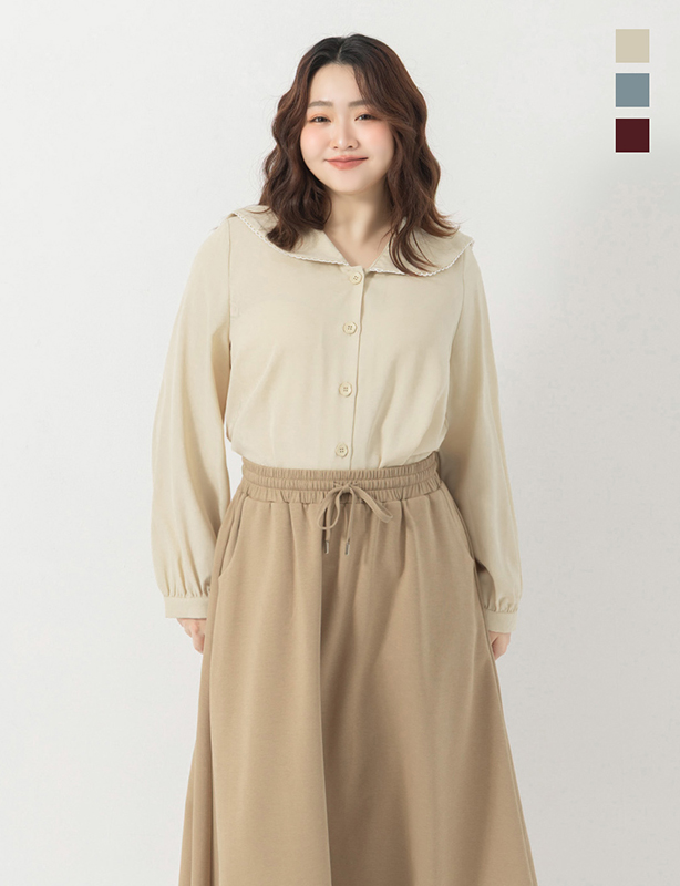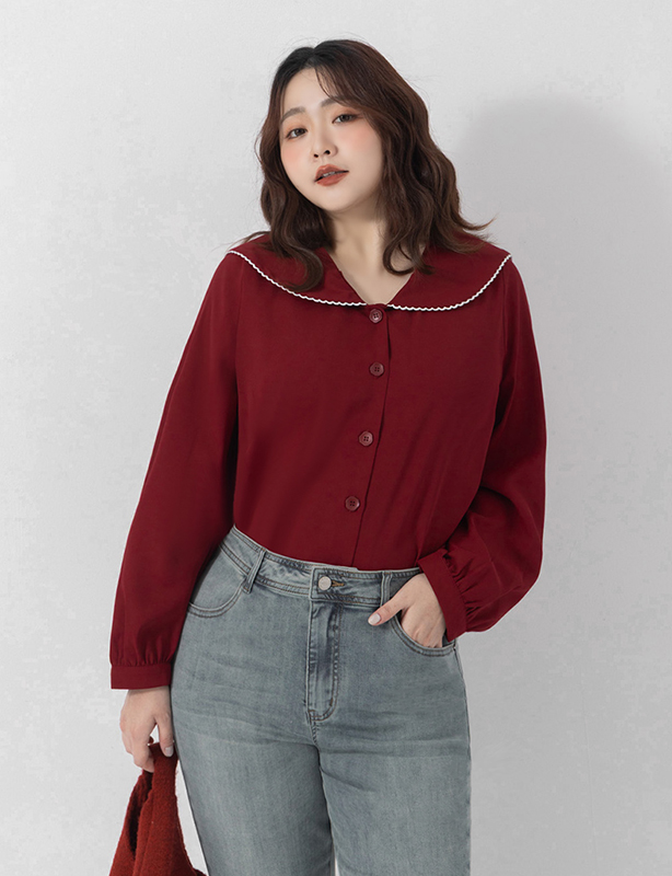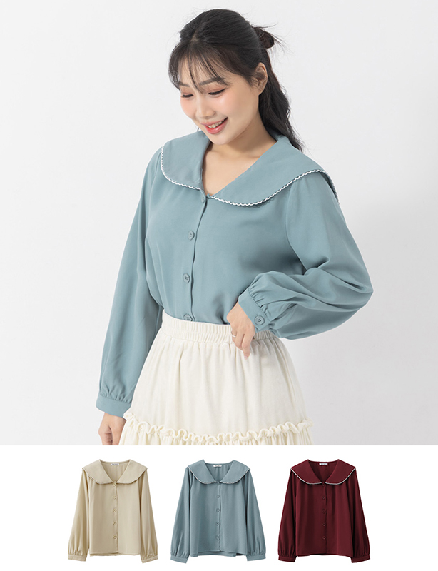 仙女緞面荷葉翻領襯衫(附綁帶)