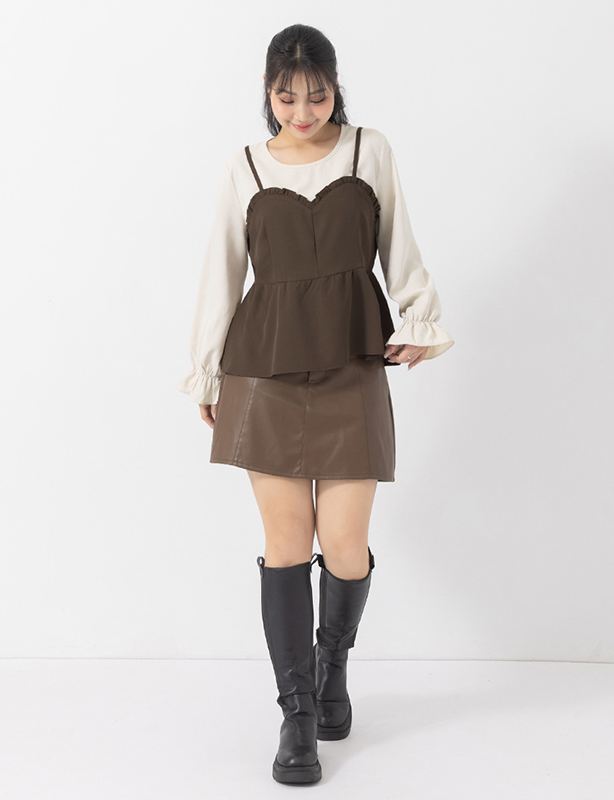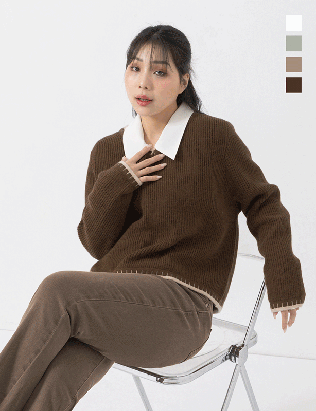 Q彈暖薑絨車線長袖上衣(附領綁帶)