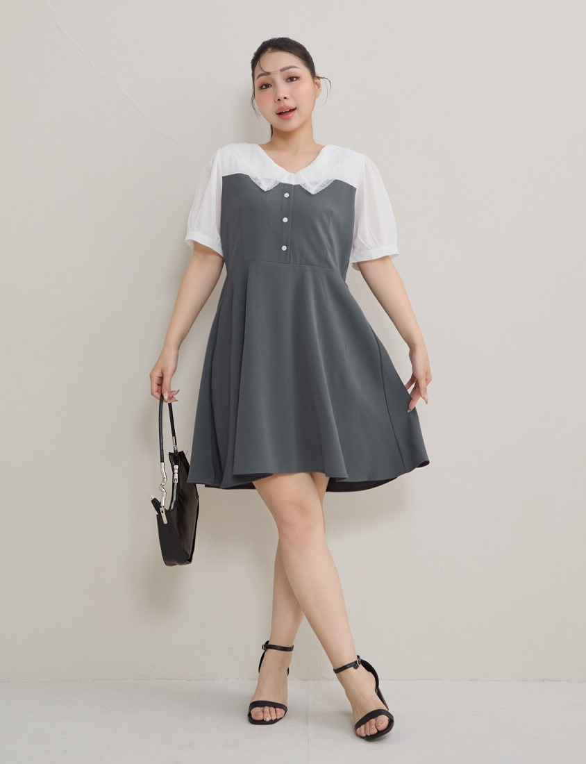 假兩件蕾絲翻領短洋裝