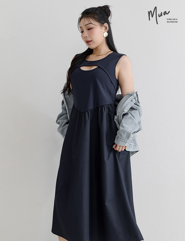 率性工裝拉鍊無袖洋裝(附腰帶) MUA! 中大尺碼洋裝
