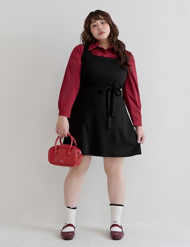 桃心領斜紋吊帶短洋裝 中大尺碼洋裝