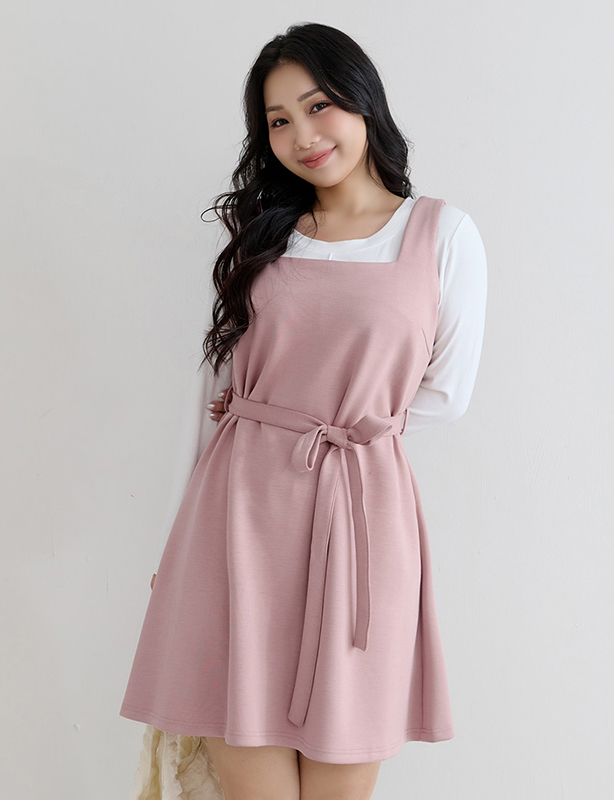 雲朵棉方領背心吊帶洋裝(附腰帶)
