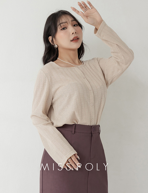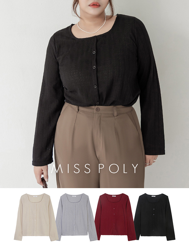 百搭木耳邊雪花坑條上衣 MISS. 中大尺碼上衣