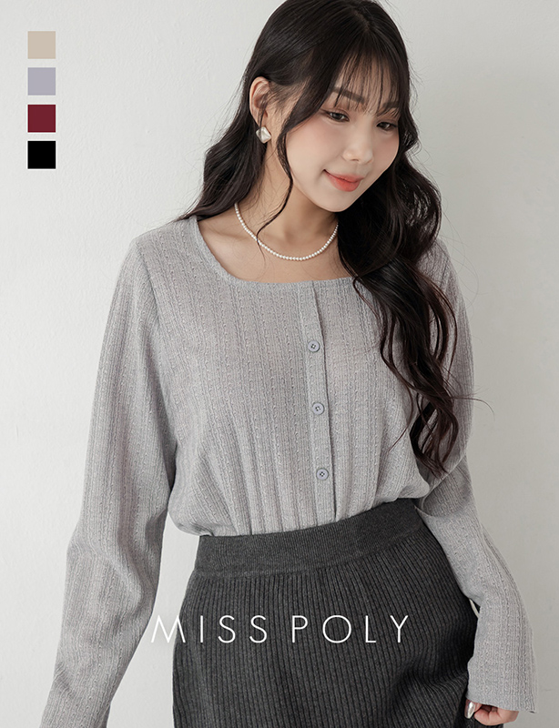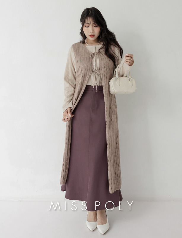 韓系微透膚針織長袖上衣(附綁帶) MISS