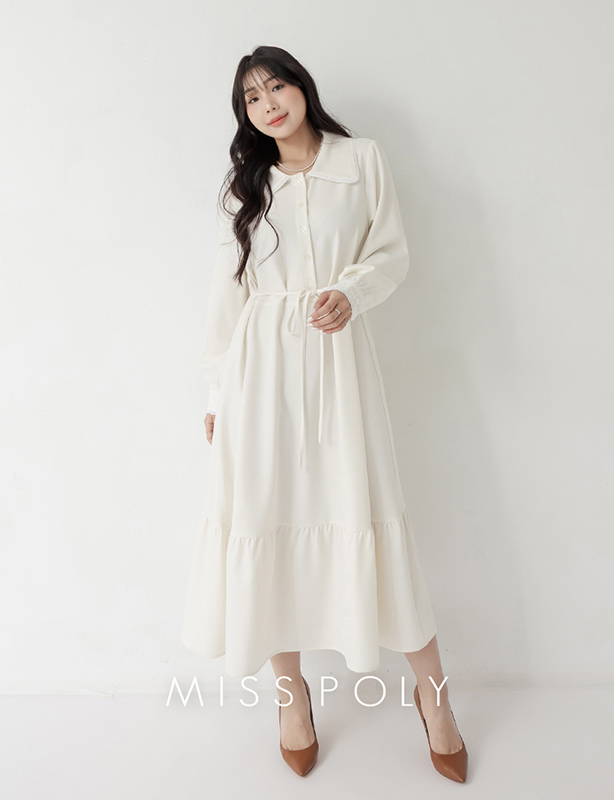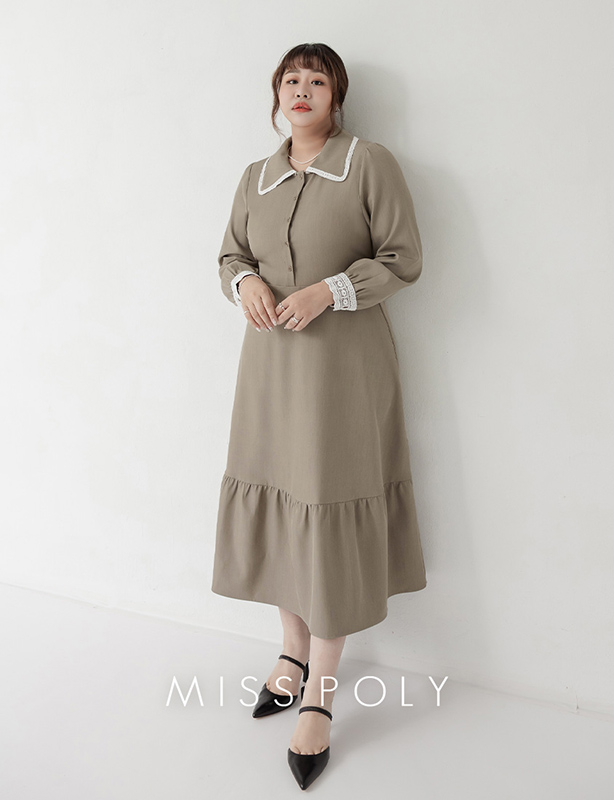古巴領雪紡排釦短袖洋裝(附綁帶) MISS. 中大尺碼洋裝