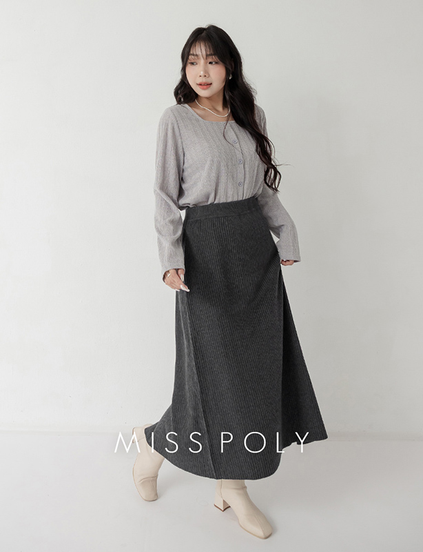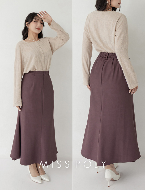 質感寬百褶後鬆緊長裙 MISS. 中大尺碼裙子