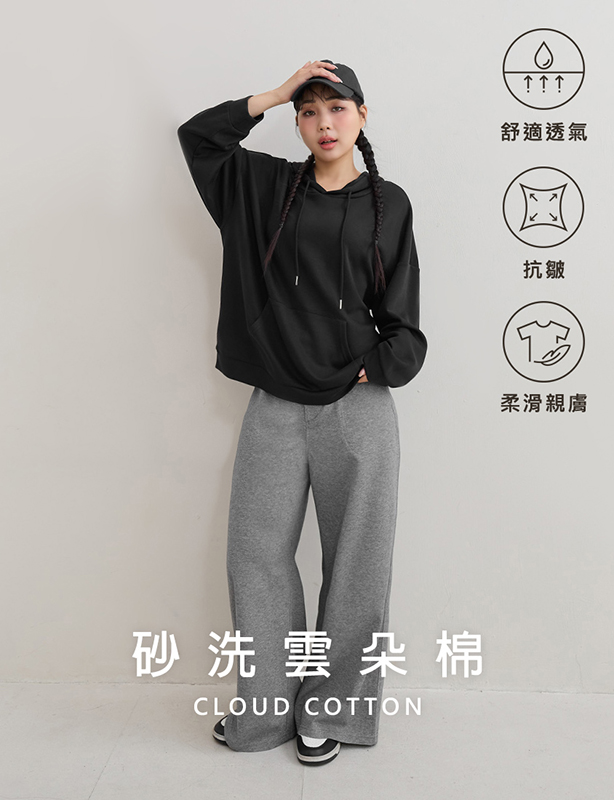 砂洗雲朵棉寬鬆連帽上衣 (unisex)