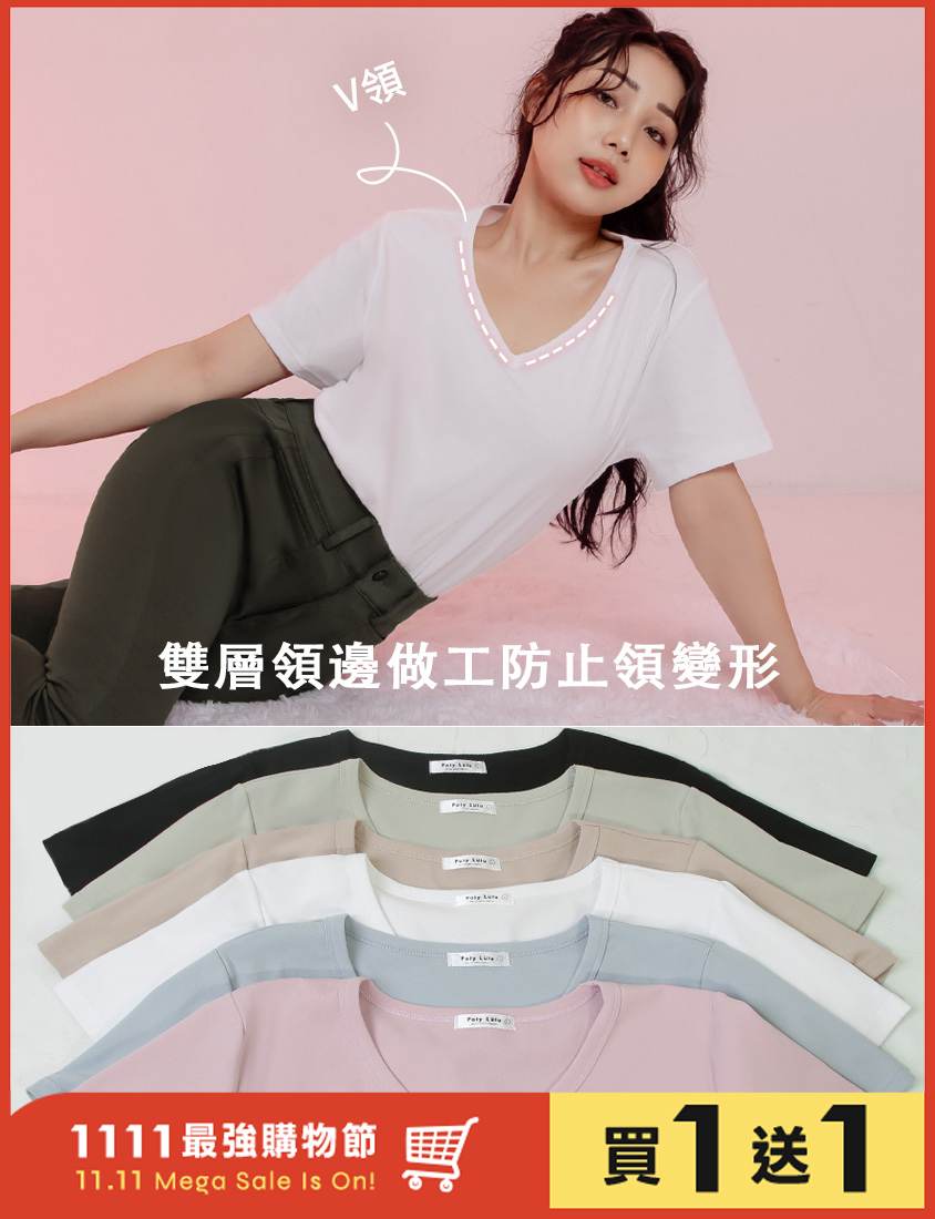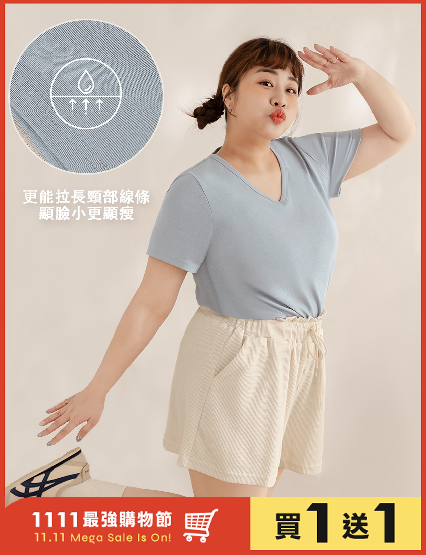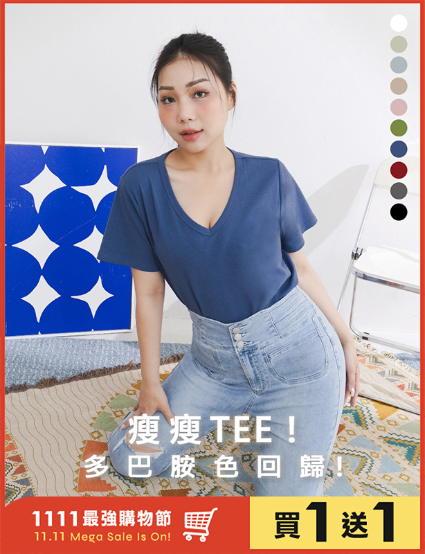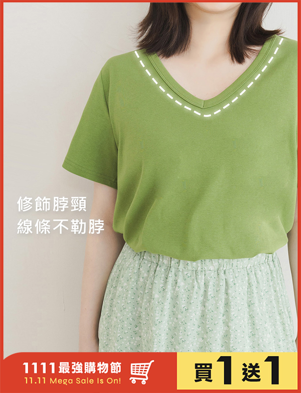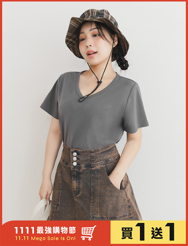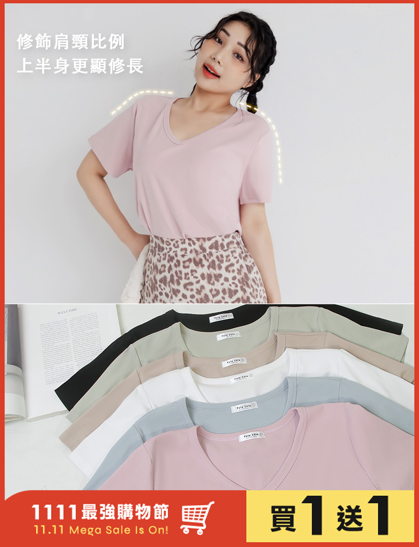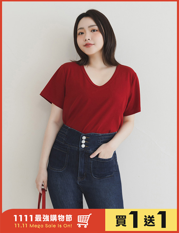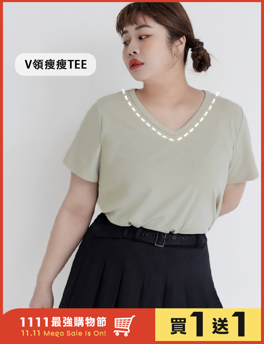 V領多色舒適修身瘦瘦TEE 中大尺碼上衣