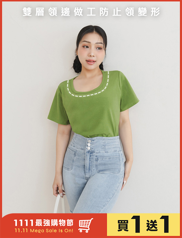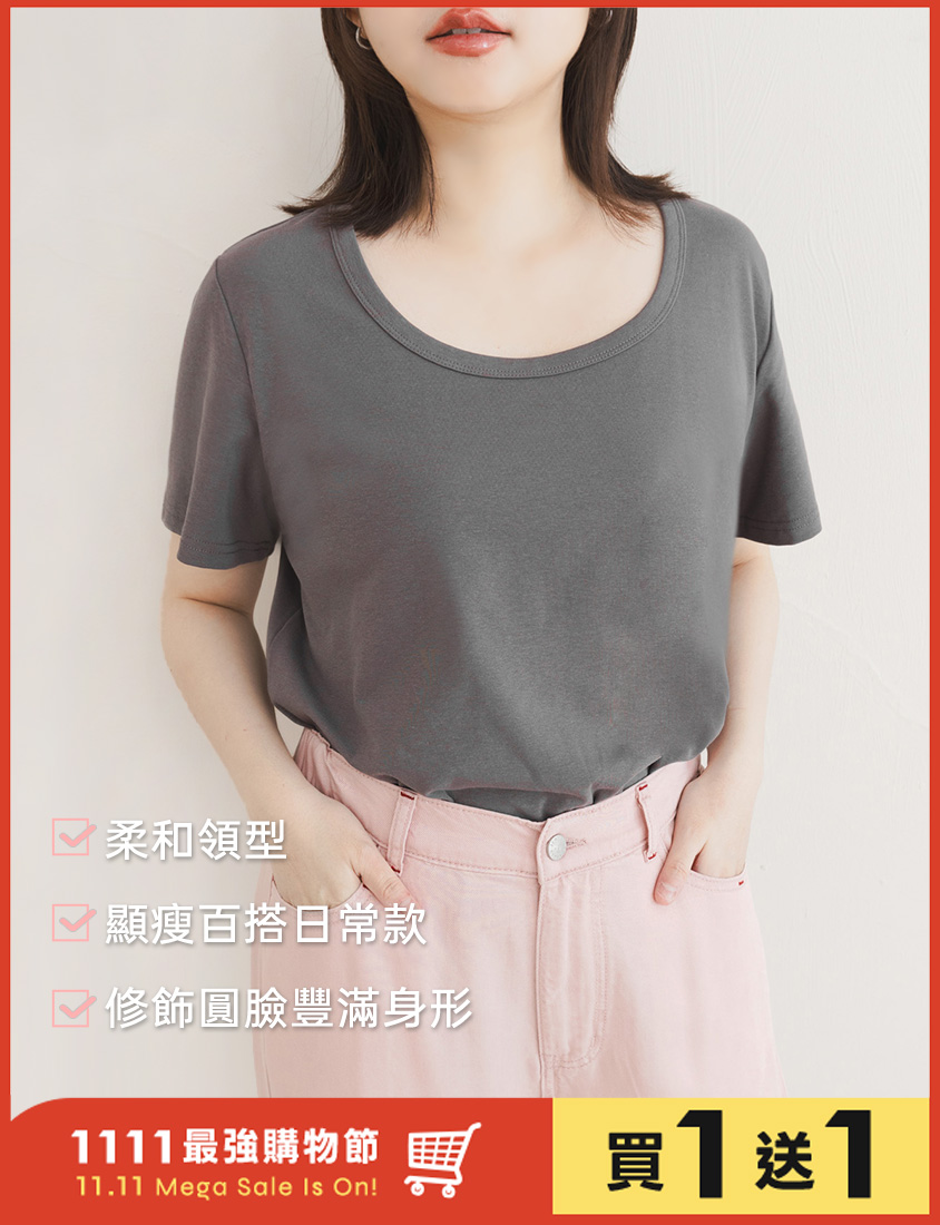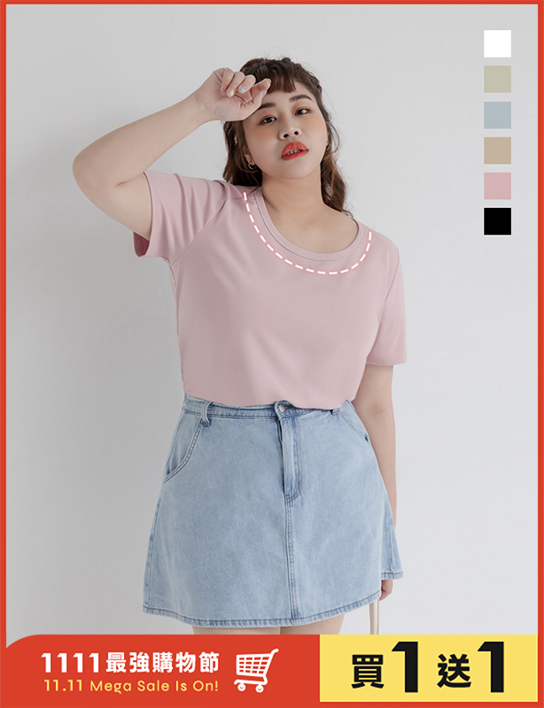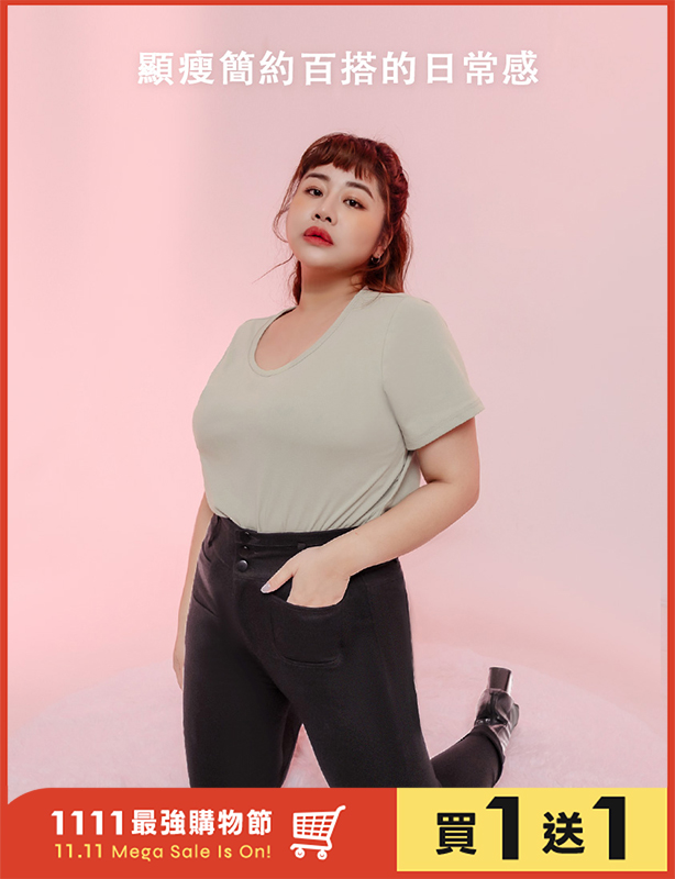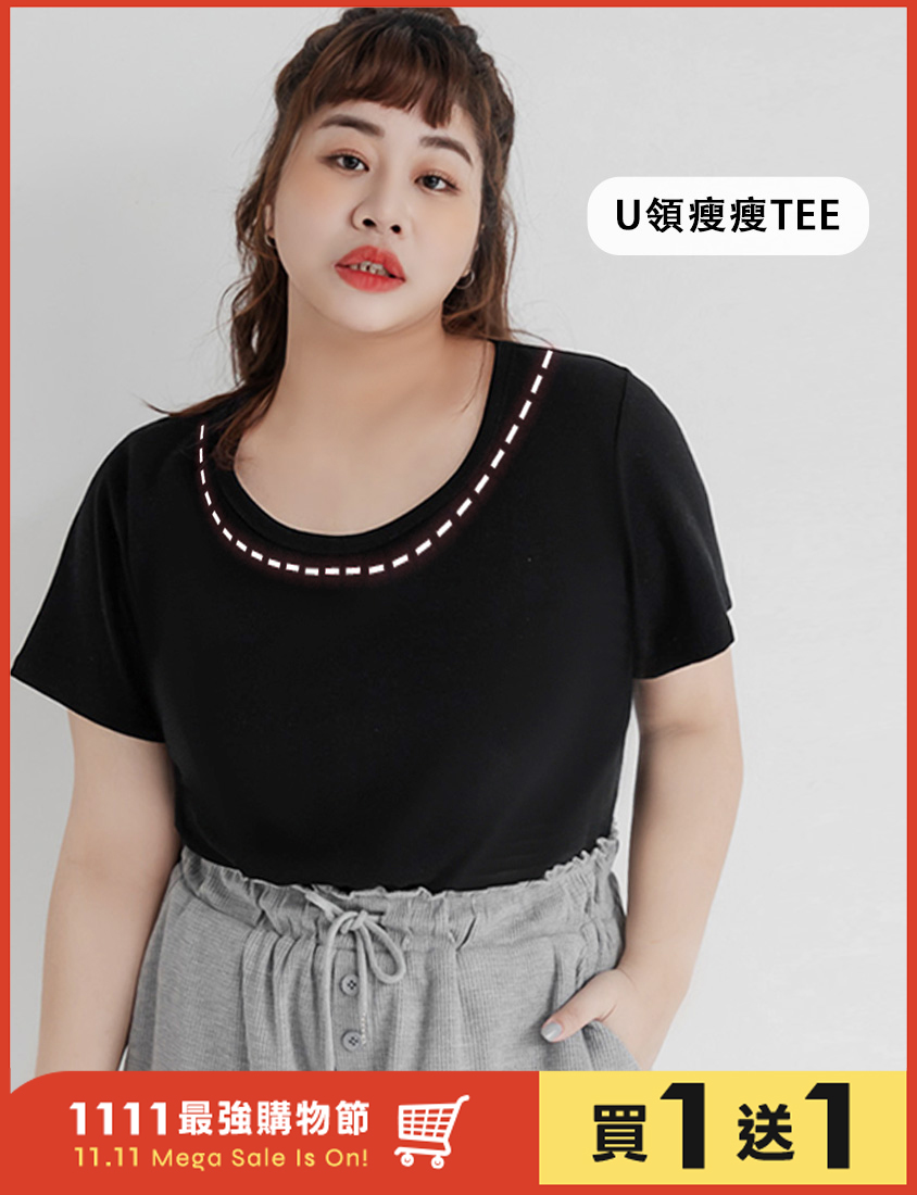 U領多色舒適修身瘦瘦TEE 中大尺碼上衣