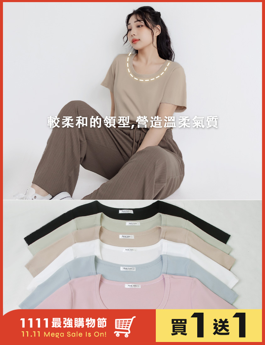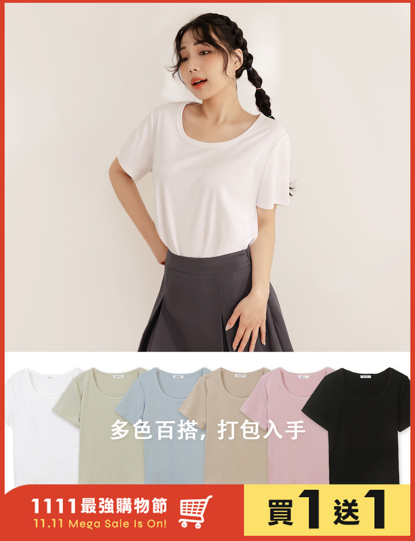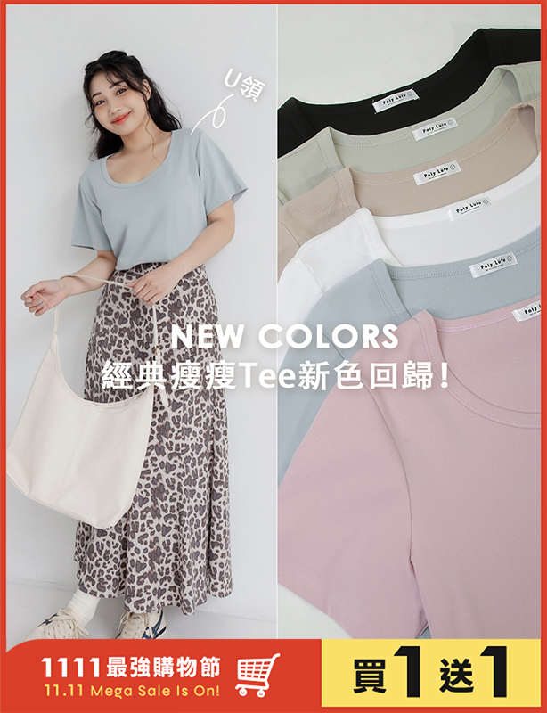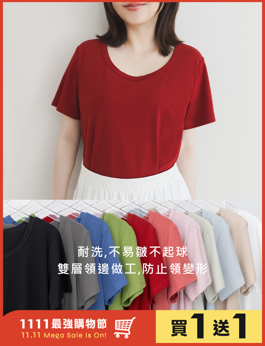 U領多色舒適修身瘦瘦TEE 中大尺碼上衣
