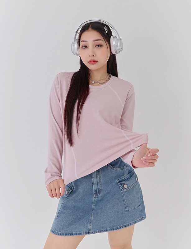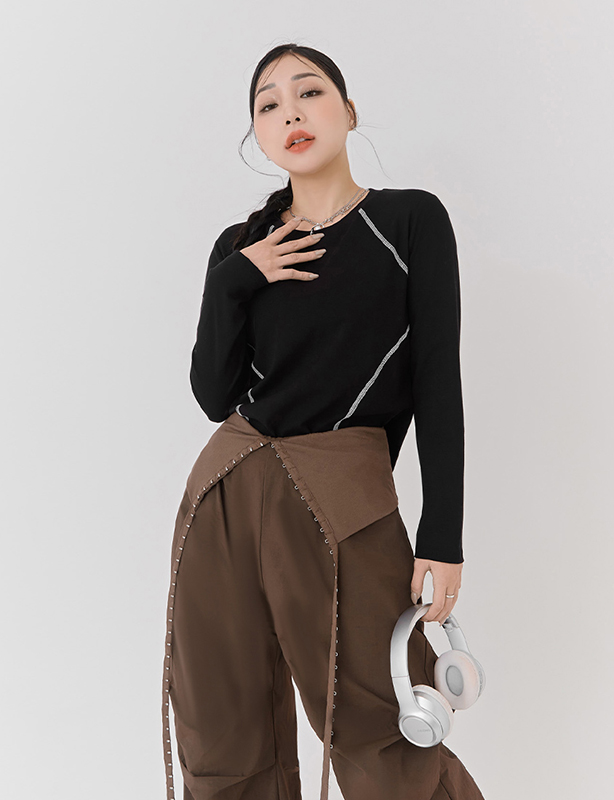 圓領撞色車線修身上衣