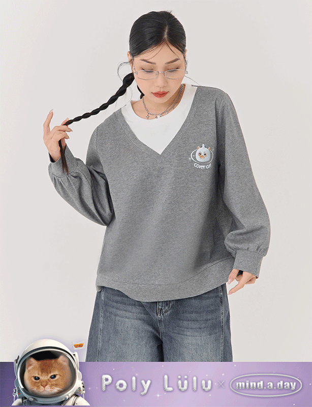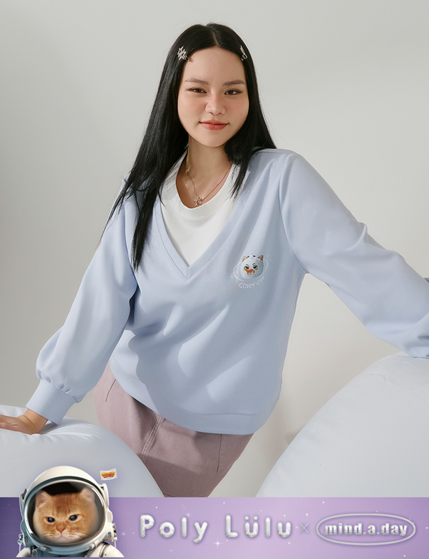 冬日跩貓假兩件雲朵棉上衣(unisex)(MIND.A.DAY聯名)