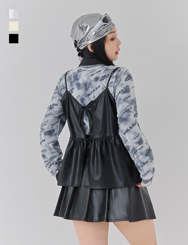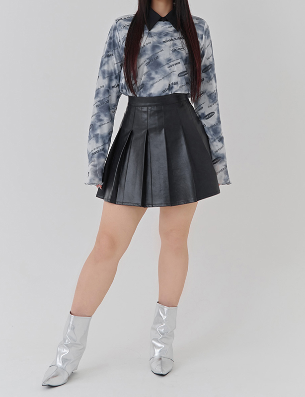 微辣修身皮革百褶短裙