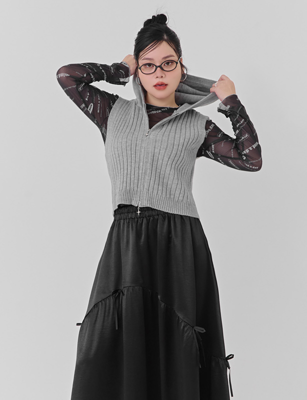 雙開拉鍊連帽針織背心