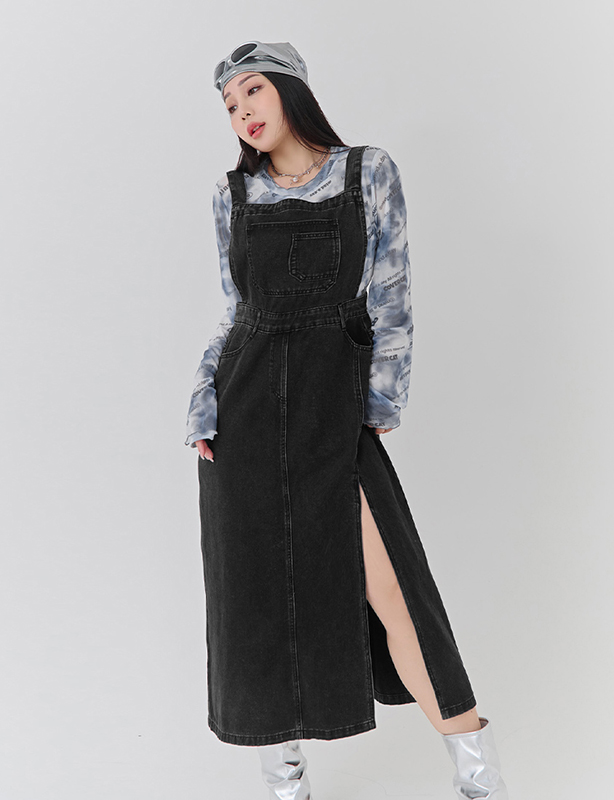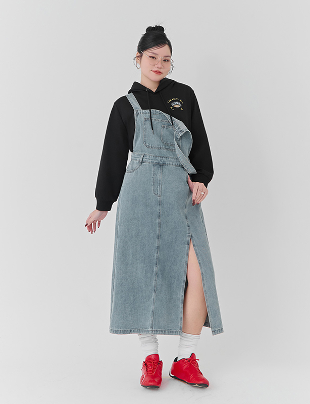 百搭前開衩牛仔吊帶洋裝