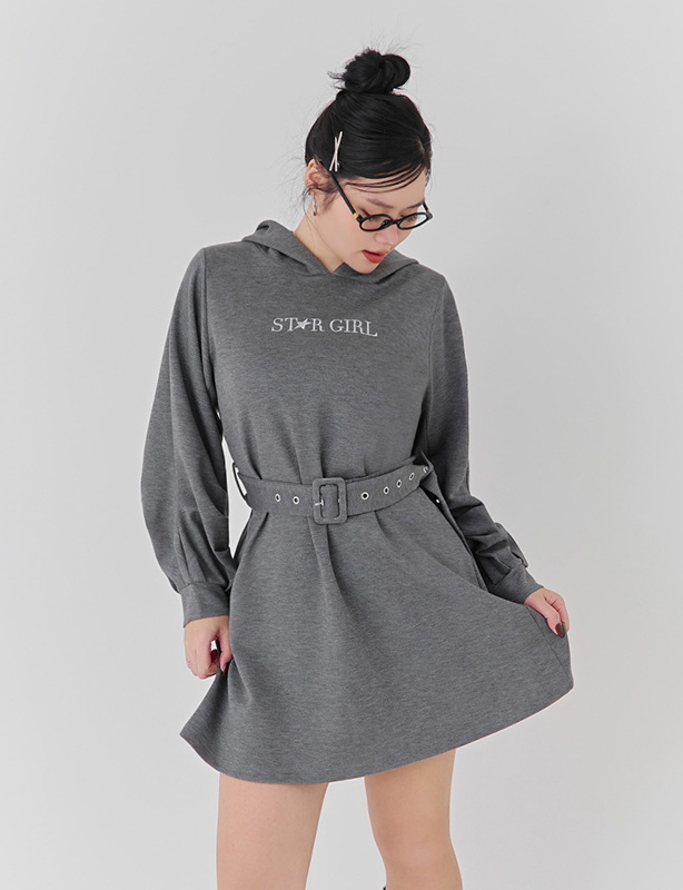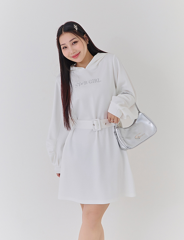 閃亮女孩刺繡雲朵棉洋裝(附腰帶)