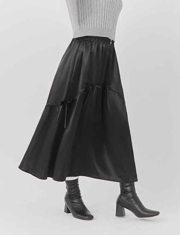 閃亮緞面不對稱蝴蝶結蛋糕裙
