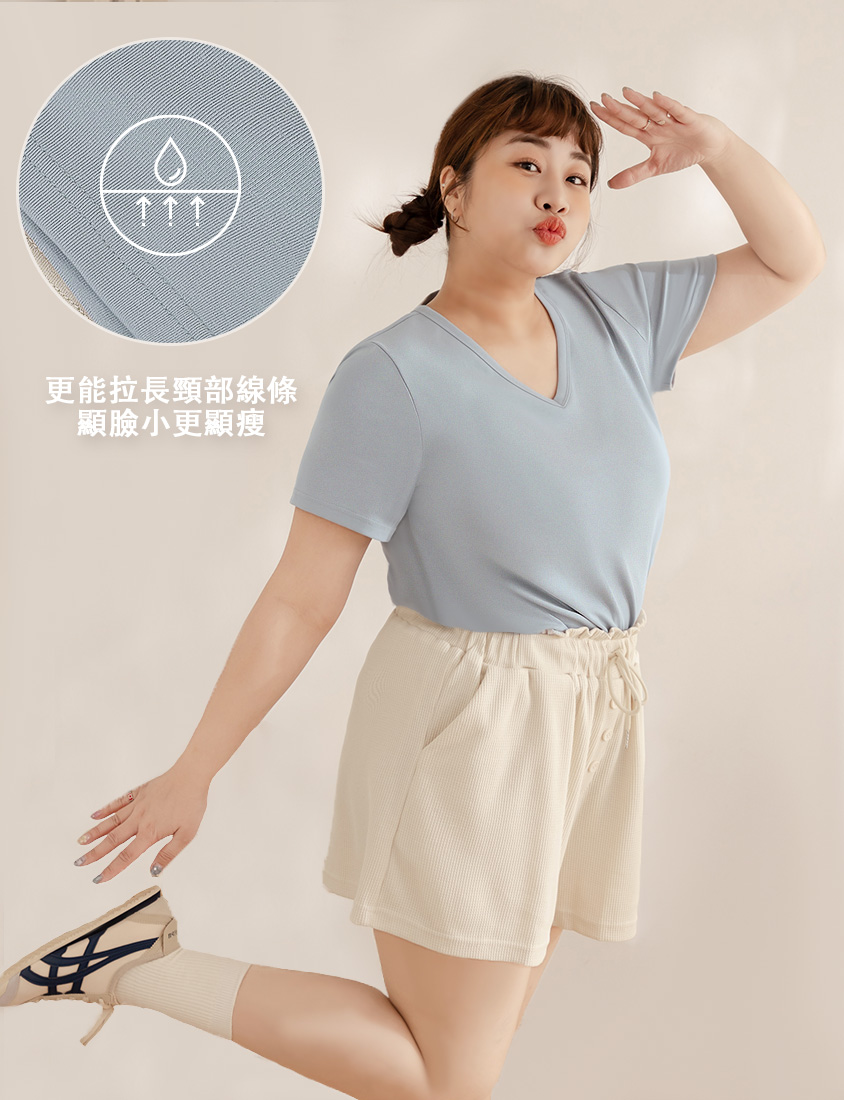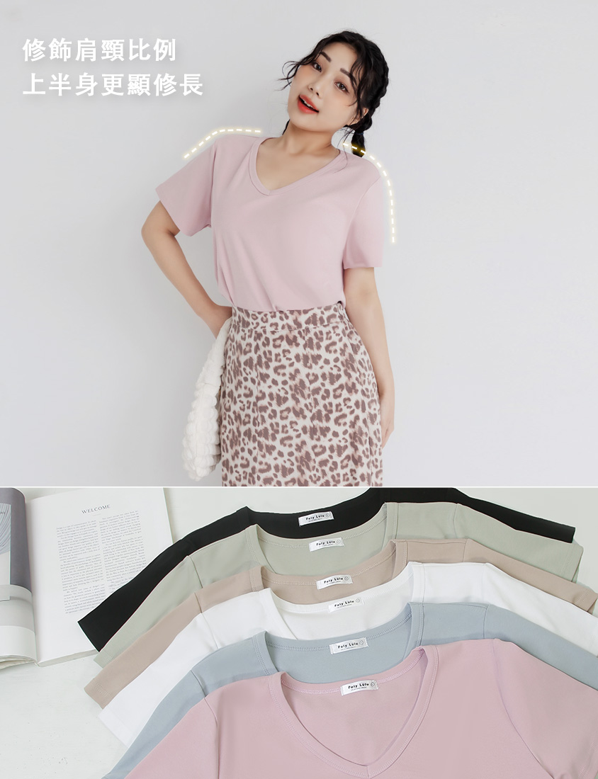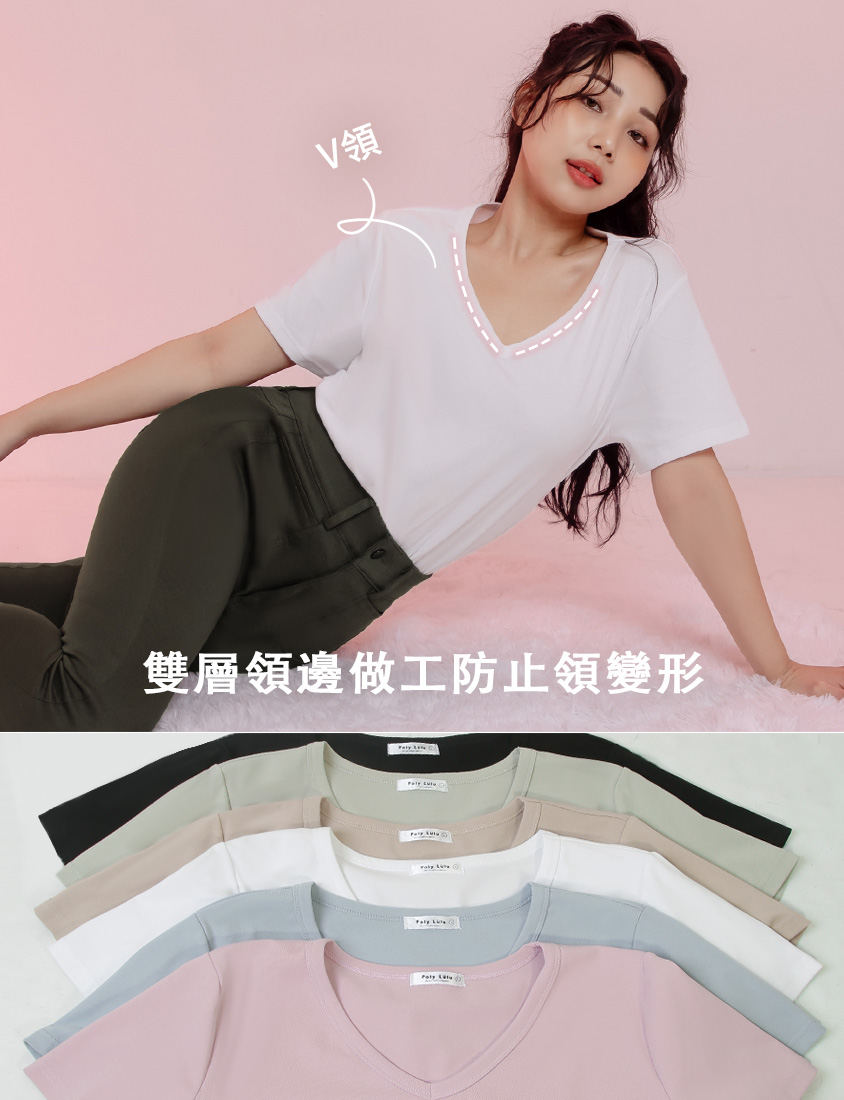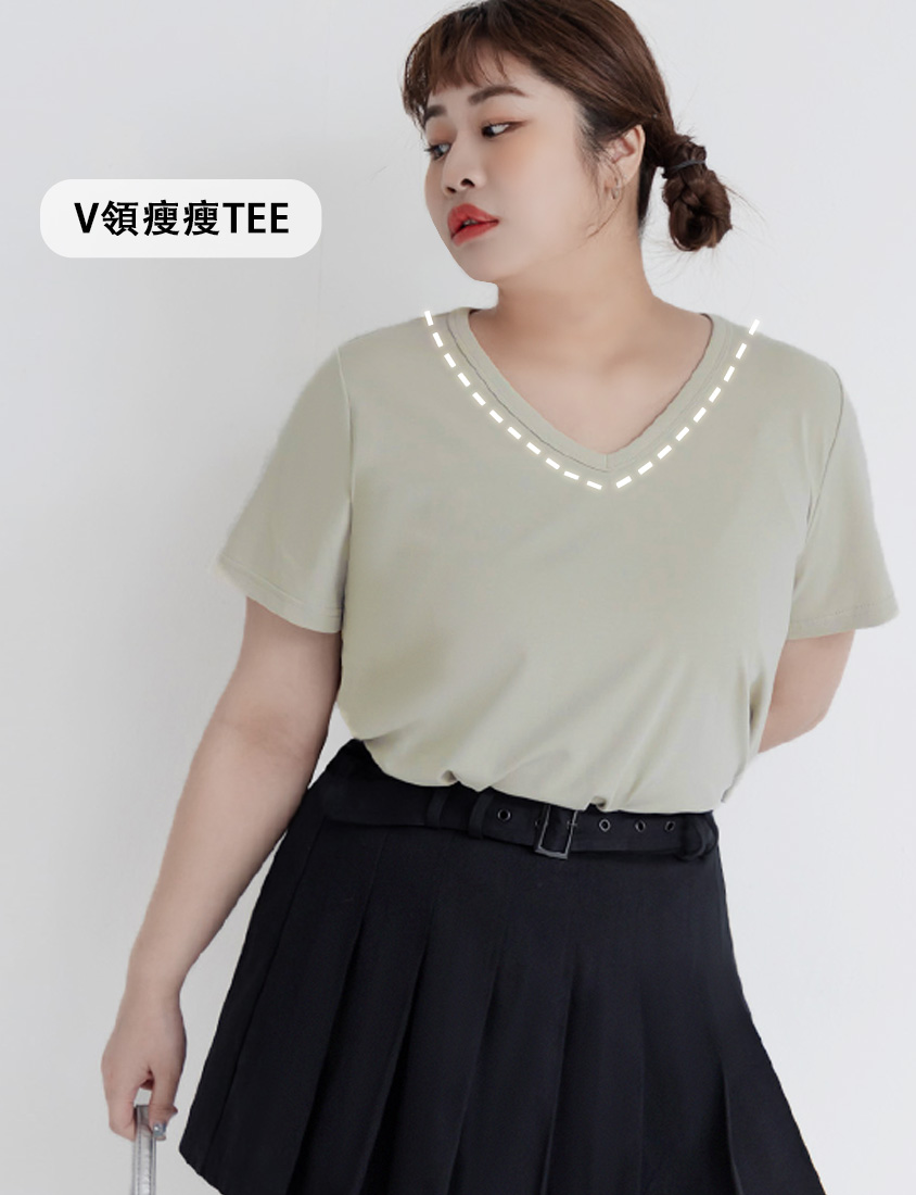 V領多色舒適修身瘦瘦TEE 中大尺碼上衣