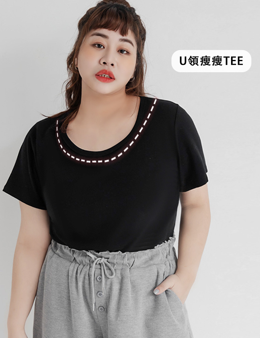 U領多色舒適修身瘦瘦TEE 中大尺碼上衣
