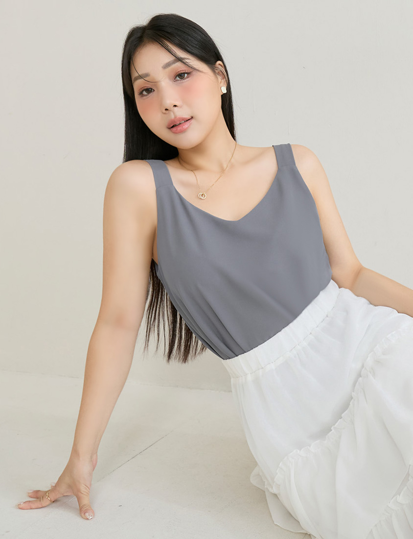 雲朵棉方領背心吊帶洋裝(附腰帶)