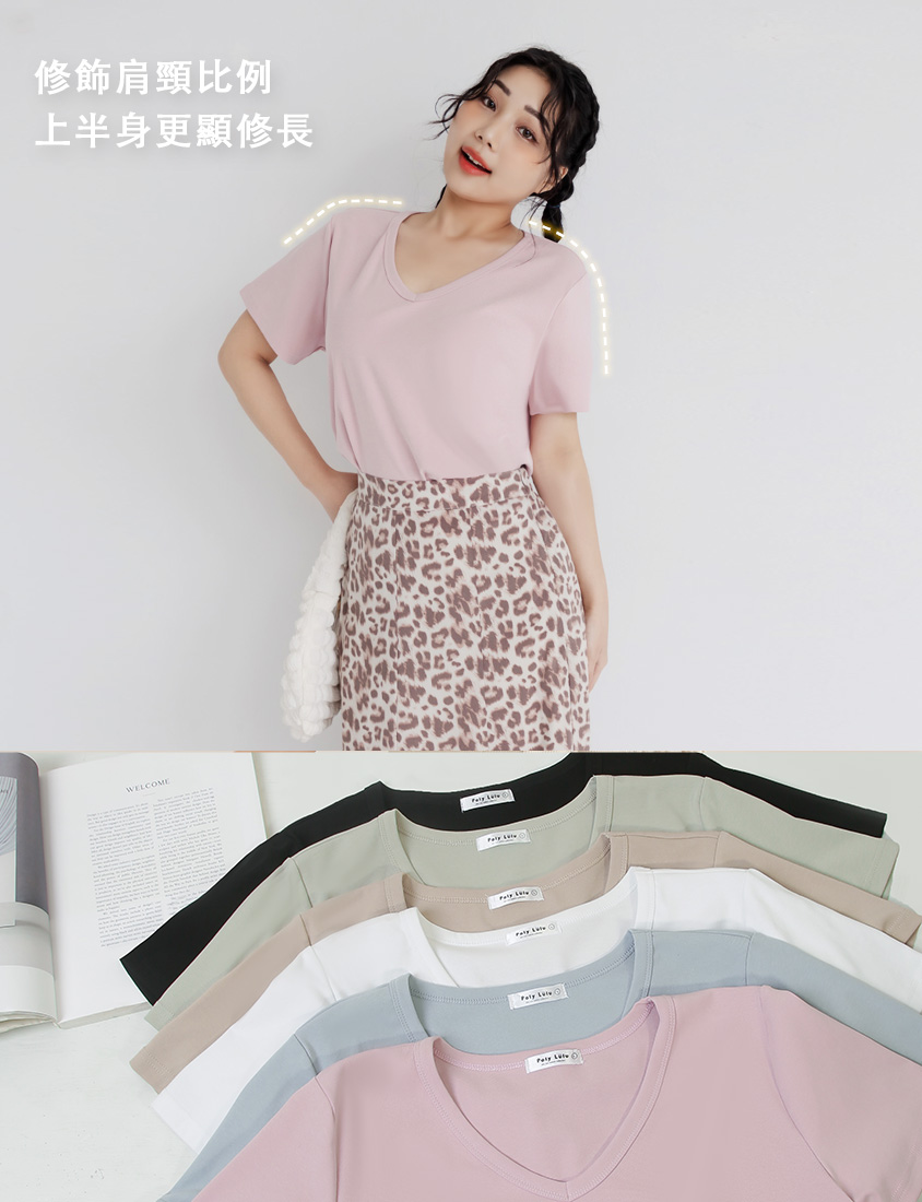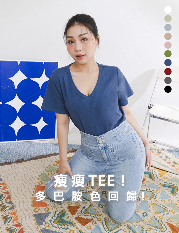 V領多色舒適修身瘦瘦TEE 中大尺碼上衣