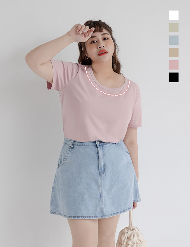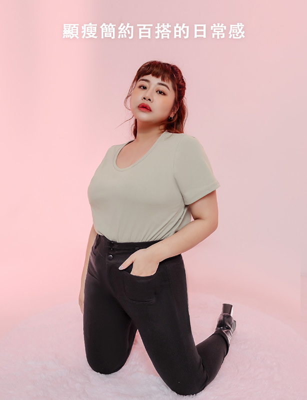 U領多色舒適修身瘦瘦TEE 中大尺碼上衣