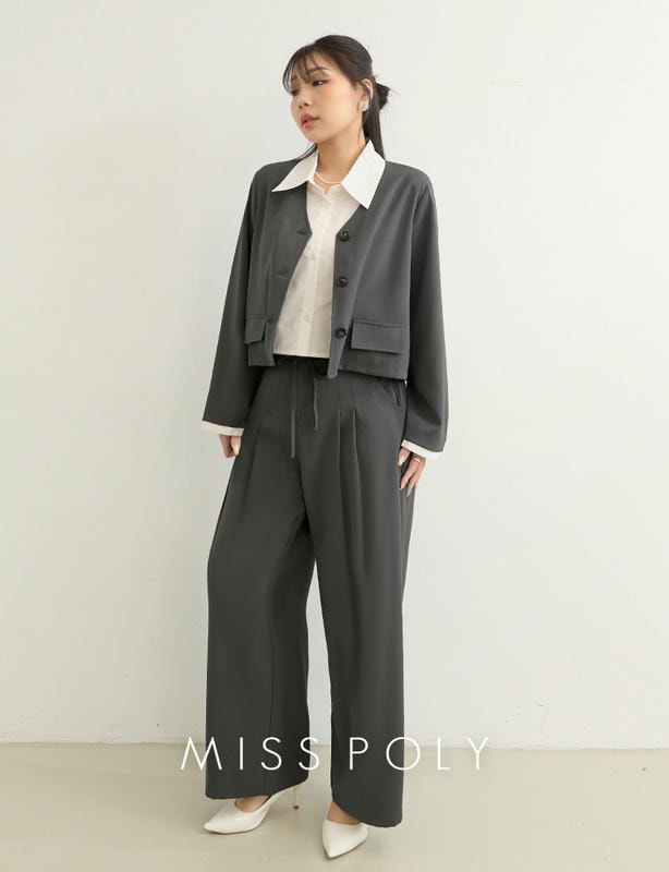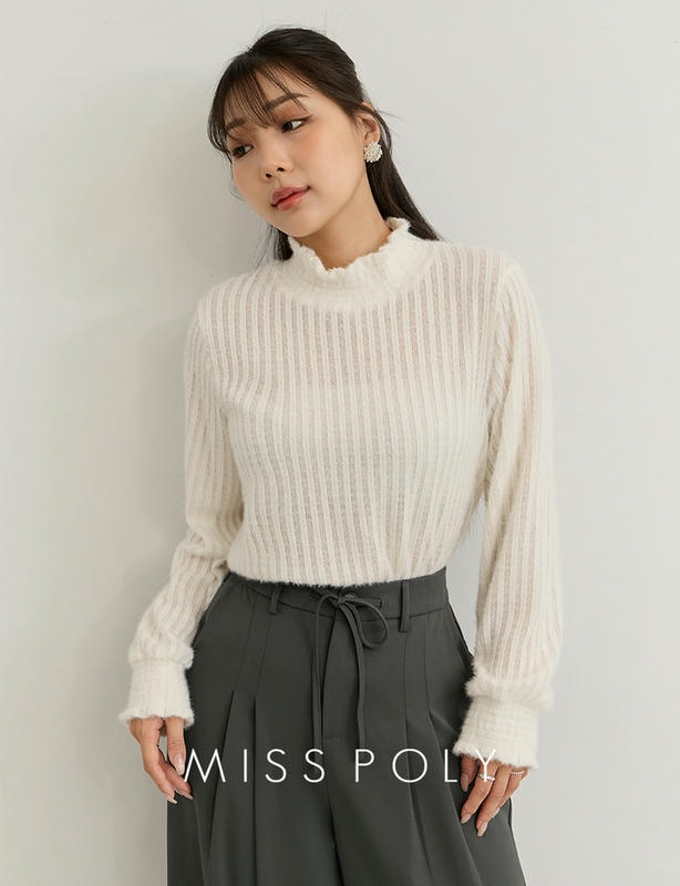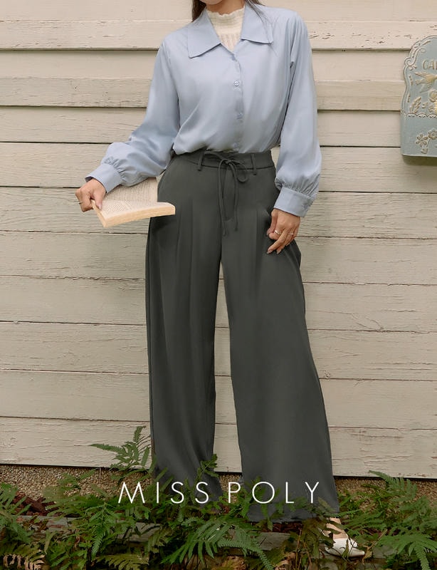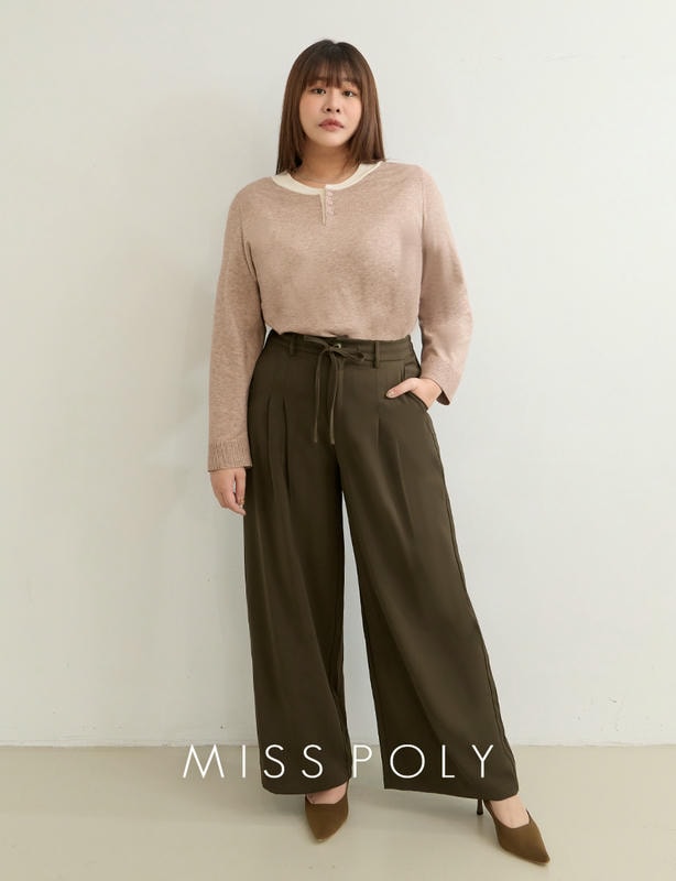Q彈暖薑絨車線長袖上衣(附領綁帶)