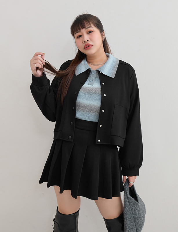 立領雙頭拉鍊坑條短版外套 MUA