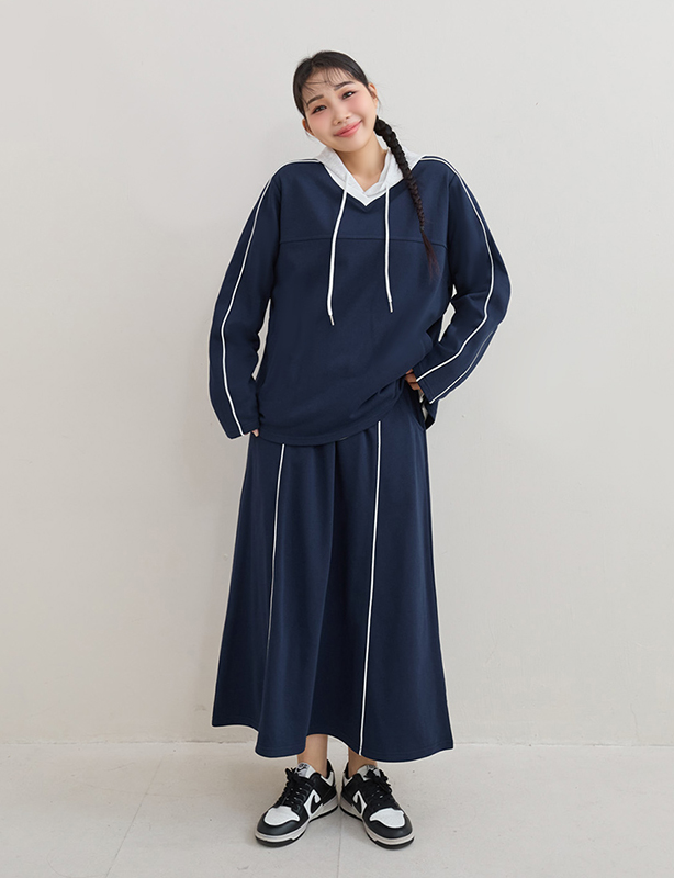 親膚棉麻車線A字長裙(附腰帶) 中大尺碼裙子